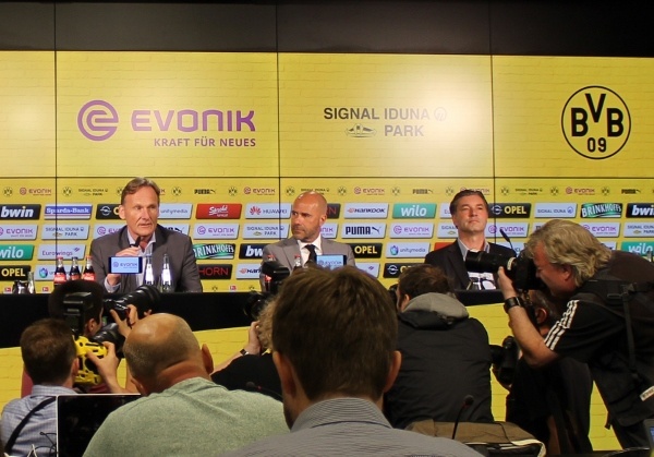 Es war der erwartet große Medienauftrieb heute Mittag in Dortmund, als im völlig überfüllten Presseraum des ‚Westfalenstadion‘ der neue BVB-Trainer Thomas Tuchel offiziell von Vereinsseite aus vorgestellt wurde.