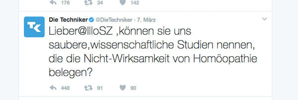 Auf Nachfrage eines Twitter-Users distanzierte sich die Techniker von dieser Aussage: