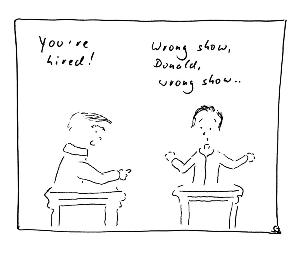 In der Amerikanischen Fernseh-Reality-Show „The Apprentice“ bewerben sich Kandidaten in einem „13-wöchigen Job-Interview“ für einen mit 250.000 US$ dotierten Einjahresvertrag in einem der Unternehmen des Tycoons Donald Trump.