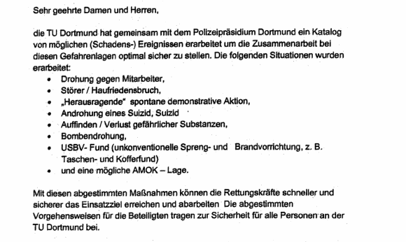 Und ansonsten ist für die TU Dortmund eine spontane Demonstration anscheinend ein Bedrohungsszenario: