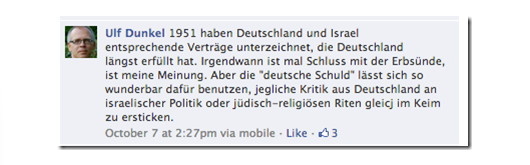 Ulf Dunkel reagierte hier lediglich auf die aberwitzige Hetze, mit der Vertreter des Judentums eine gesetzliche Erlaubnis der Zwangsbeschneidung eingefordert haben.