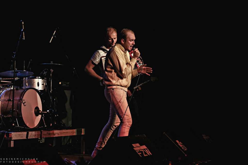 Man munkelt, sie werden mal so „groß wie Tocotronic“ und das kann ich nach ihrem gestrigen Auftritt im FZW in Dortmund nicht mehr abstreiten. Die Husumer bringen alles mit was unbedingt angehört und angeschaut werden sollte. Wer Indie-Rock vom Feinsten mag, gepaart mit norddeutschem Charme, mit einer Prise Post-Punk der 90-er gespickt, voller Energie, sprachlich sehr prägnant und zum Mitdenken gedacht, mal laut und pöbelnd, dann wieder zart und leise mit kleinen Noise-Effekten versehen… der sollte sich diesen Knaller an Band nicht entgehen lassen :