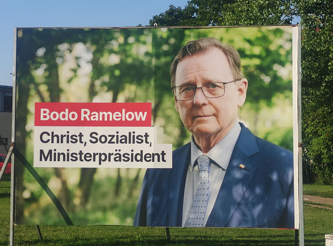 Die Partei hat sich so selbst zerlegt, da es auch für einen außerordentlich beliebten Ministerpräsidenten, der wirklich gute Arbeit in unserem kleinen Bundesland geleistet hat, echt schwer ist, sich irgendwie über Wasser zu halten. Wenn nicht noch ein Wunder geschieht, wird er wohl nicht noch einmal Ministerpräsident werden. Aber das wird ja in Thüringen sowieso eine ganz, ganz schwierige Geburt werden. Eigentlich schade, denke ich, wie ich den Bodo da so christlich-sozial und freundlich auf dem Plakat sehe. So wie auf dem Bild war er auch, unser Ministerpräsident souverän aber auch menschlich und immer authentisch. Er hat auch einmal einer Freundin von mir innerhalb weniger Stunden Quartiere für Flüchtlingskinder aus der Ukraine besorgt. Groß angegeben hat er damit nicht. Im Ruhrgebiet wird man mein ehrliches Bedauern über seine geringen Chancen vielleicht nicht verstehen, aber im Osten besonders in Thüringen hat sich die vor langer Zeit einmal da gewesene Nachfolgepartei der SED tatsächlich emanzipiert. Hier ist die Linke schon seit vielen Jahren kein Kommunisten-Verein mehr. Extreme Leute wie Trotzkisten oder Stalinisten kann man in der Realpolitik nämlich nicht gebrauchen. Und das hat die Linke hier zehn Jahren gemacht – Realpolitik und nicht einmal schlecht. Vielleicht hätte sie es auf dieser Schiene schaffen können, sich auch bundesweit als ernstzunehmende Partei zu etablieren. Aber nein. Als Susanne Hennig-Wellsow, man erinnert sich vielleicht noch an den Blumenstrauß, der dem Kurzzeit-Ministerpräsident Thomas Kemmerich vor die Füße geworfen wurde, in die Bundespolitik ging, dachte ich in meiner Naivität tatsächlich, die bringt die Realpolitik in den westlichen Teil der Linken. Aber sie wurde rausgemobbt. Das war der Anfang vom Niedergang der Linken, denn kuscheln mit der Identitätspolitik, statt Politik für die Arbeiterklasse zu machen, ideologische Verblendung statt realpolitischer Kurs, die Ukraine im Stich lassen und dann das Drama mit Frau Wagenknecht… das war alles nicht hilfreich. Das Schlimmste aber ist, dass Die Linke den Osten im Stich gelassen hat und das ist auch ein Grund, warum so viele Ostdeutsche die AFD wählen. Ostdeutsche Mitbürger, die noch irgendwelche ideellen oder realen Werte der alten DDR retten wollten, fanden sich früher in der Linkspartei wieder. Und damit meine ich nicht, dass die Ossis die Mauer zurückhaben wollten. Die Linke ist heute jedenfalls nicht mehr die Partei, die die Ostdeutschen in dieser Hinsicht vertritt. Aus diesem Grund haben viele Wähler sie verlassen und die AFD gibt nicht ganz zu Unrecht damit an, dass sie nun die Partei des Osten wäre. Das ist, wenn man das Parteiprogramm anschaut, natürlich völliger Nonsens, aber ja so sieht es nun einmal aus. Und Herr Höcke lacht sich ins Fäustchen.