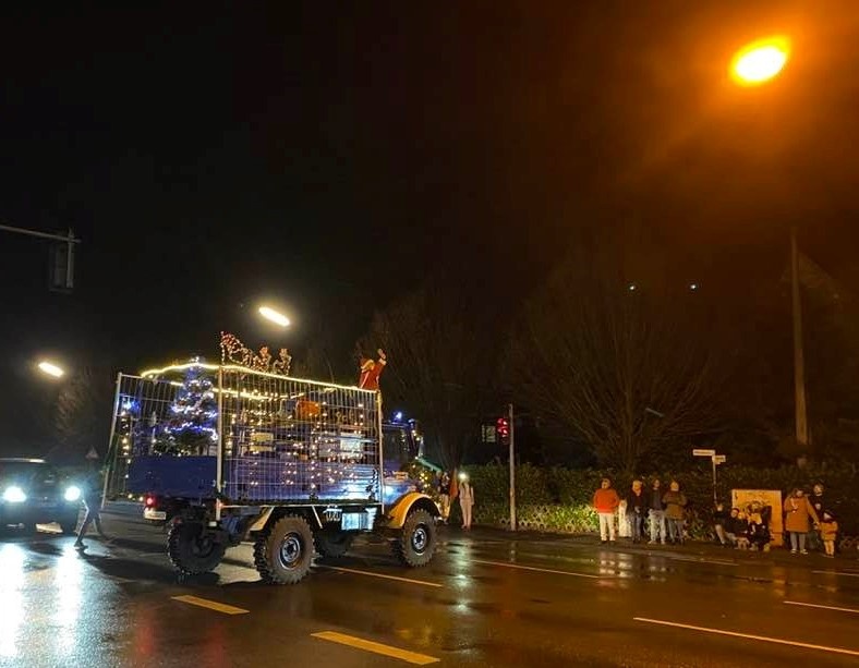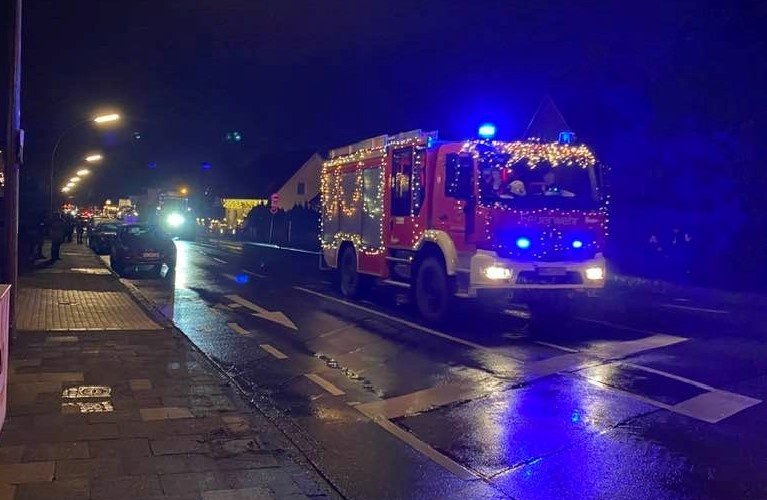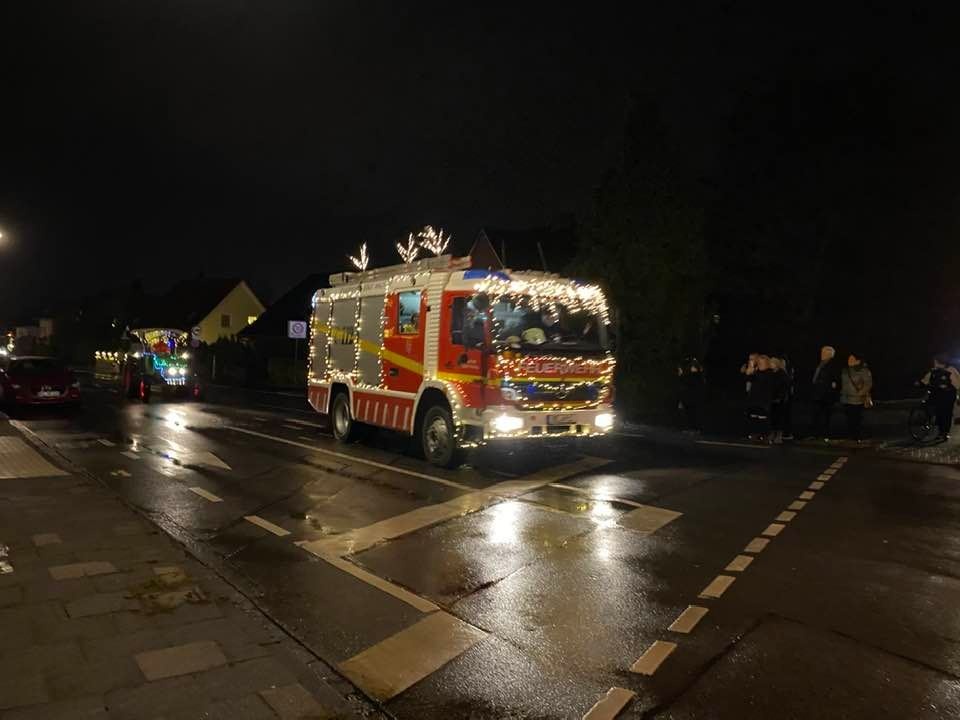 Am Zielort angekommen stieg mir überraschender Weise intensiver Glühweingeruch in die Nase. Einige mittelalte Damen prosteten sich zu, und hatten dem Anschein nach schon ein paar Runden des Heißgetränks intus, wie ihr auffällig lautes Verhalten und die mitgebrachten Thermosflaschen vermuten ließen. Am Mehrfamilienhaus auf der anderen Straßenseite warteten etliche junge Familien auf das Eintreffen der angekündigten Fahrzeugkolonne. Kinder kreischten, es lief leise, aber deutlich hörbare Weihnachtsmusik. Ich war direkt emotional angefasst. Zu meiner eigenen Überraschung.