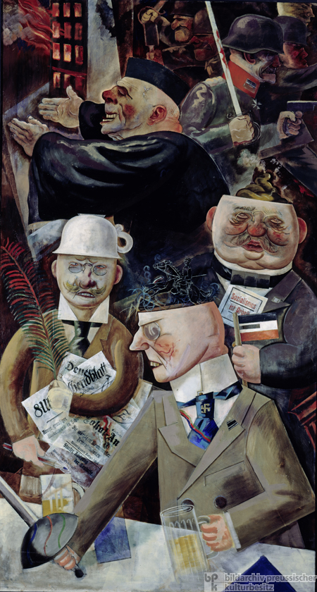 Ein antiwestliches, antidemokratisches und antiliberales Denken ist bei diesen Leuten sehr weit verbreitet. Dieses Phänomen allerdings kennt man ja aus der Weimarer Republik wie Georg Grosz es in seinem Bild ‚Die Stützen der Gesellschaft‘ 1926 dargestellt hat. Wenn man die Gesichter der Personen von damals durch heute ersetzt, kann man das Bild im Grunde 1:1 wieder verwenden, so widerlich dies klingt und sich anhören mag.