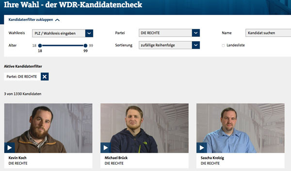 Ich habe weder von der Rechten noch von der MLPD jemanden beim WDR-Kandidatencheck gefunden. Bin zu blöd, richtig zu suchen, oder hat der WDR die inzwischen rausgenommen?
