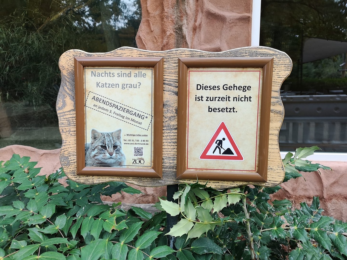Bei 20 Hinweisschildern auf im Umbau befindliche und daher leerstehende Gehege habe ich aufgehört zu zählen.