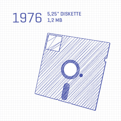 1976 war es dann soweit. Die 5,25″ Floppy Disc war das erste Massenprodukt, das als Speichermedium in der IT zum Einsatz kam.