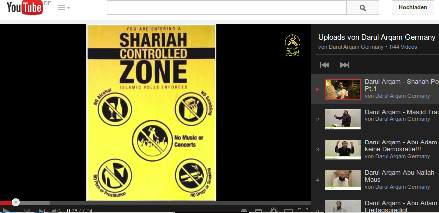Wuppertaler Salafisten haben eine „Scharia Polizei“ gegründet. Auf einem YouTube Video (editiert: Das Video ist mittlerweile aus dem Netz entfernt.) kann man die Salafisten auf Streife beobachten. Sie lungern vor einer Discothek herum, gehen in Spielhallen, und quatschen junge Männer, die sie für Muslime halten, auf der Straße an. Das Ziel ist eindeutig, die Salafisten wollen Kontrolle über die ju
