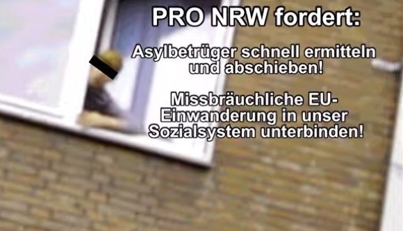 Zudem verbreitet Pro NRW in dem Clip Parolen wie “Bürgermut stoppt Asylantenflut” oder “Wut im Bauch – lass es raus!”. Dazu wurden offenkundig Menschen ohne deren Einwilligung für den Spot gefilmt, darunter sogar Kinder, die aus dem Fenster schauten. Angesichts dieses “Gesamtkunstwerks” könnten die erwähnten Parolen durchaus wie ein indirekter Aufruf zu Aktionen gegen Sinti und Roma verstanden werden.
