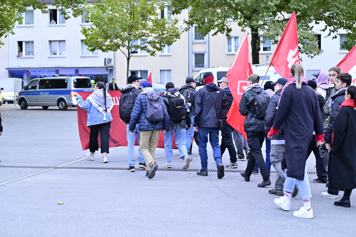In Essen war es gestern anders. Zwar waren Anhänger linksradikaler Grüppchen wie Young Struggle, Solid, der Jugend der siechenden Linkspartei und ein paar anderen in den Clan-Stadtteil Altendorf gekommen, aber sie blieben weitgehend unter sich. Wie bei vergleichbaren Demonstrationen in anderen Ruhrgebietsstädten kamen anfangs nicht mehr als gut 60 auf dem Ehrenzeller Platz zusammen. Dass die israelischen Opfer ebensowenig erwähnt wurden wie der Terror der Hamas, dafür ständig von Völkermord und Genozid geredet wurde, zeugt vom Antisemitismus und der moralischen Verelendung dieses Milieus. Aber was erwartet man von Menschen, die Schlächter wie Lenin, Stalin, Trotzki und Mao anbeten? Im Laufe der Demonstration wuchs die Zahl nach Angaben der WAZ auf über 100 an.