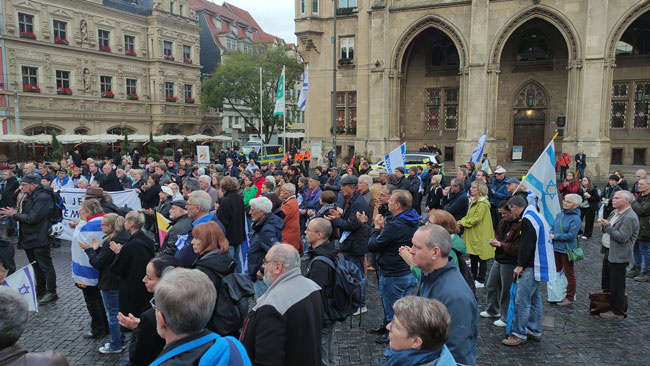 Die Polizei hatte die Lage gut im Griff, sorgte dafür, dass ein Plakat, auf dem Israel ein Genozid vorgeworfen wurde, von den Veranstaltern eingepackt wurde. Eine Auflagenliste so lang wie eine Rede Stalins trug zudem dazu bei, die Freude an der Hetze in Grenzen zu halten.