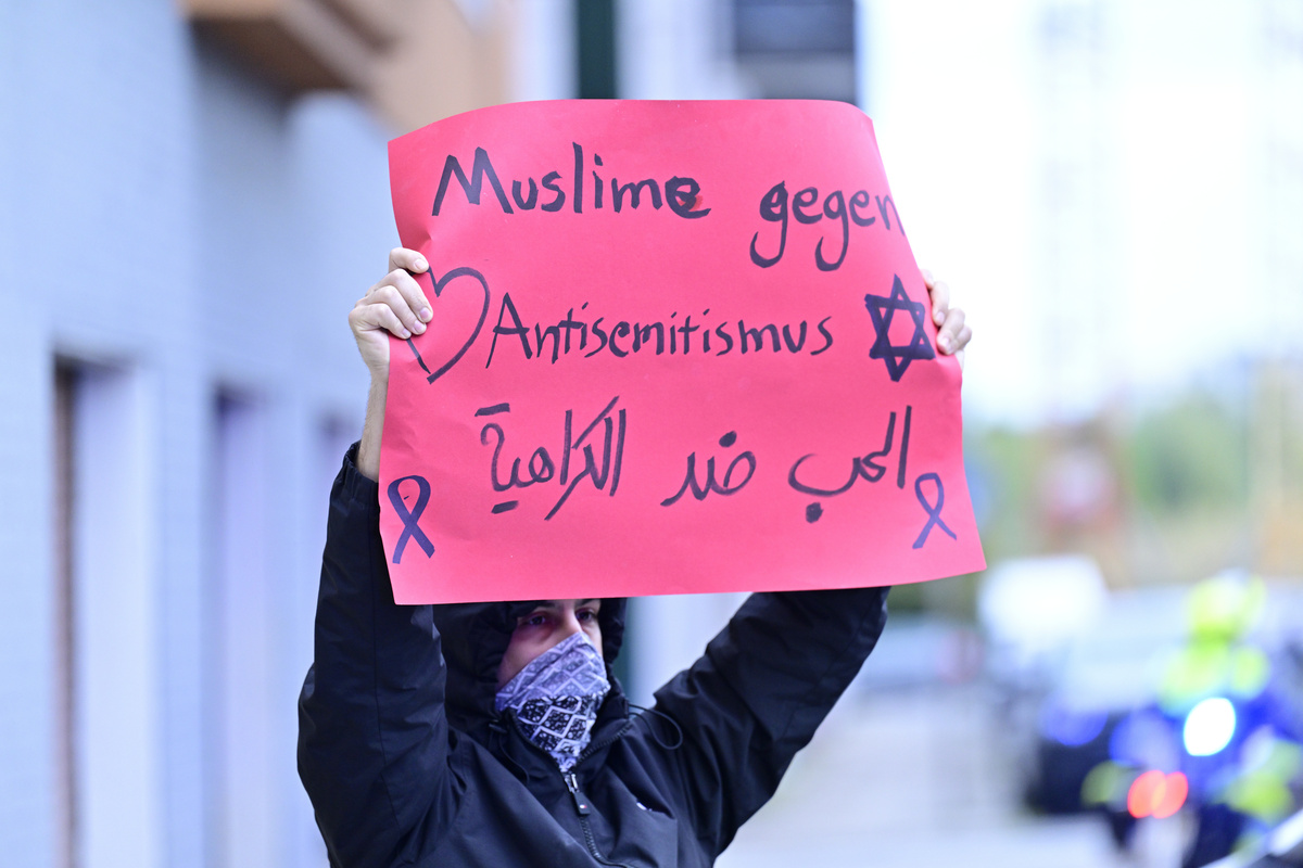 Ein einsamer, offenbar muslimischer Gegendemonstrant, hielt dagegen und beschimpfte die an ihm vorbeiziehenden Antisemiten immer wieder: „Die Nazis seid heute ihr“.