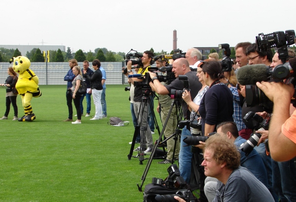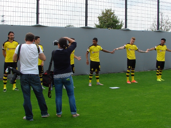 Zuvor jedoch stellten sich Trainerteam und Mannschaft heute in Dortmund-Brackel, am heimischen Trainingszentrum des Clubs, noch den dort versammelten Medienvertretern zum obligatorischen Fototermin.